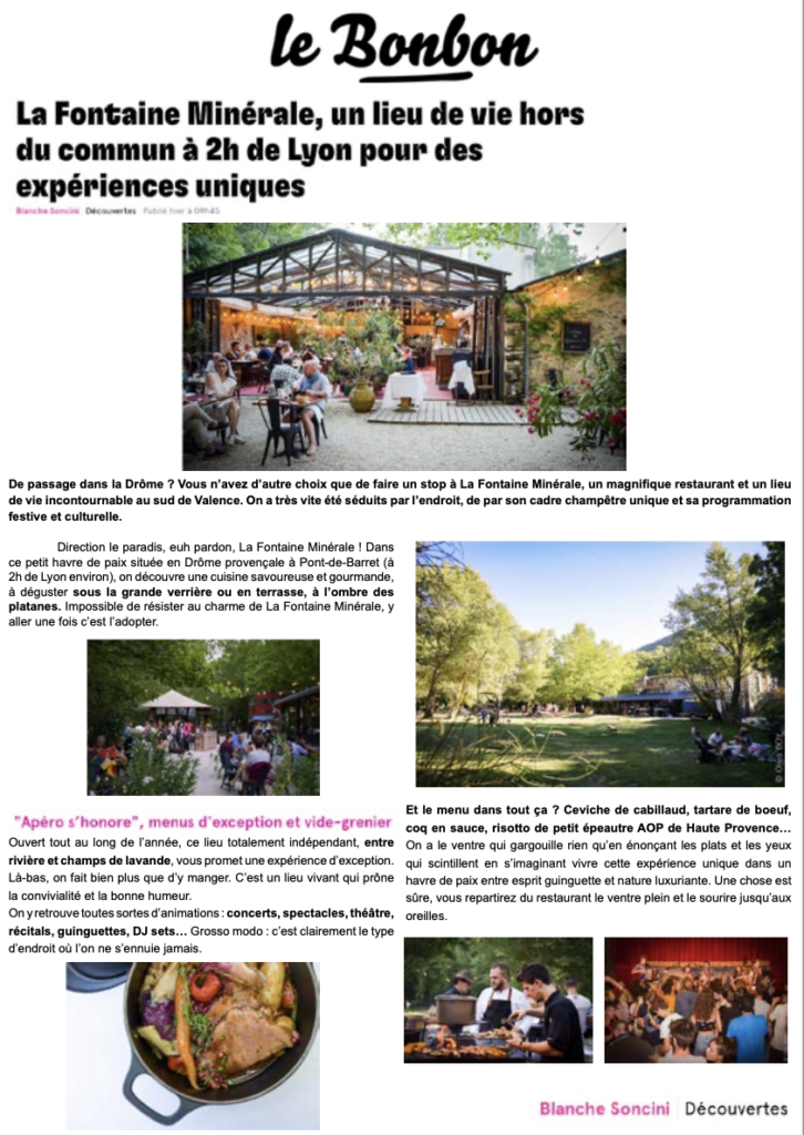 Pendant 2 ans nous avons accompagné Le restaurant et lieu festif hybride La Fontaine Minérale (basé à Pont-de-Barret – 26) sur la refonte de leur identité visuelle et leur communication 360.